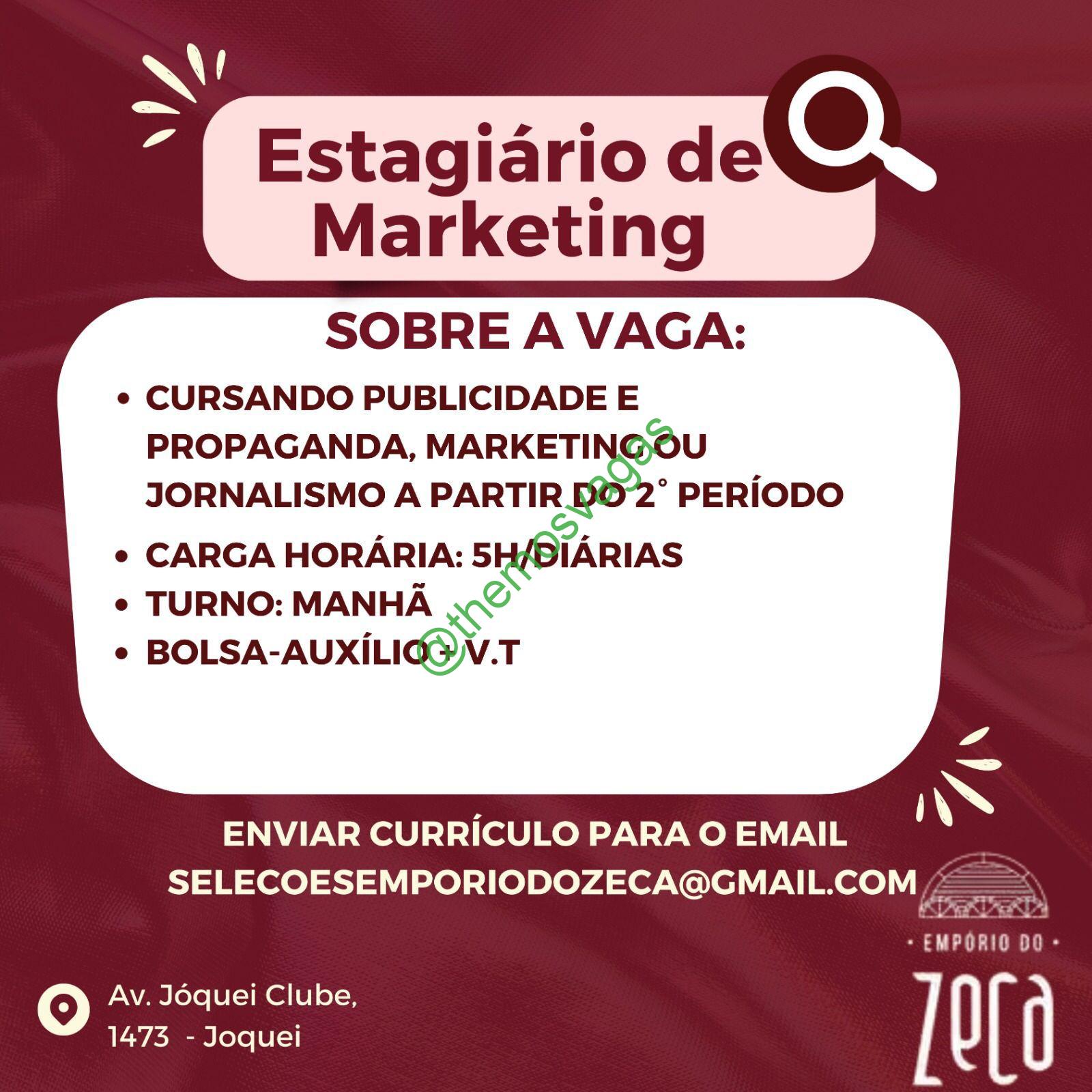 – Interessados(as) e que atendam ao perfil solicitado acima, devem enviar o currículo para o e-mail selecoesemporiodozeca@gmail.com contendo no título/assunto “Estágio de Marketing – THE“.