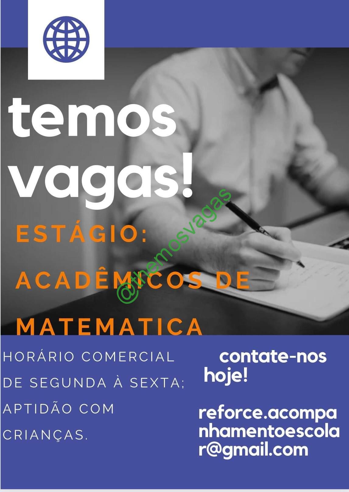 – Interessados(as) e que atendam ao perfil solicitado acima, devem enviar o currículo para o e-mail reforce.acompanhamentoescolar@gmail.com contendo no título/assunto “Estágio Acadêmico de Matemática