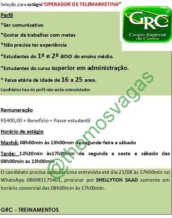 Estágio de Operador de Telemarketing / 02 vaga(s) / Teresina – PI
