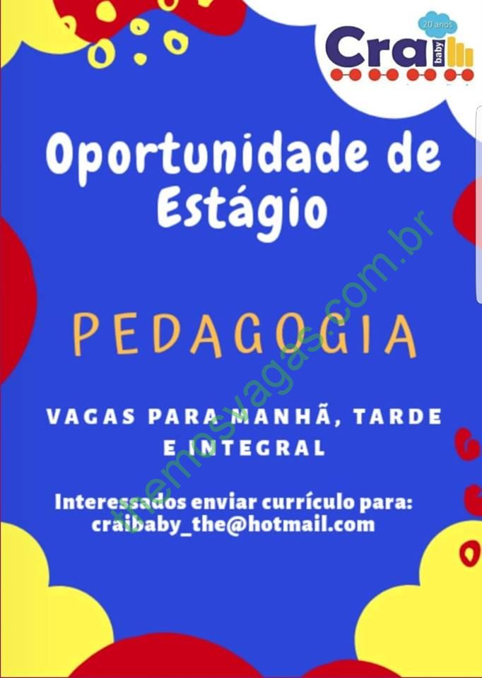 Interessados(as) e que atendam aos requisitos exigidos na imagem acima devem enviar o perfil profissional, contendo no título/assunto do e-mail “Estagio em Pedagogia” , para craibaby_the@hotmail.com .