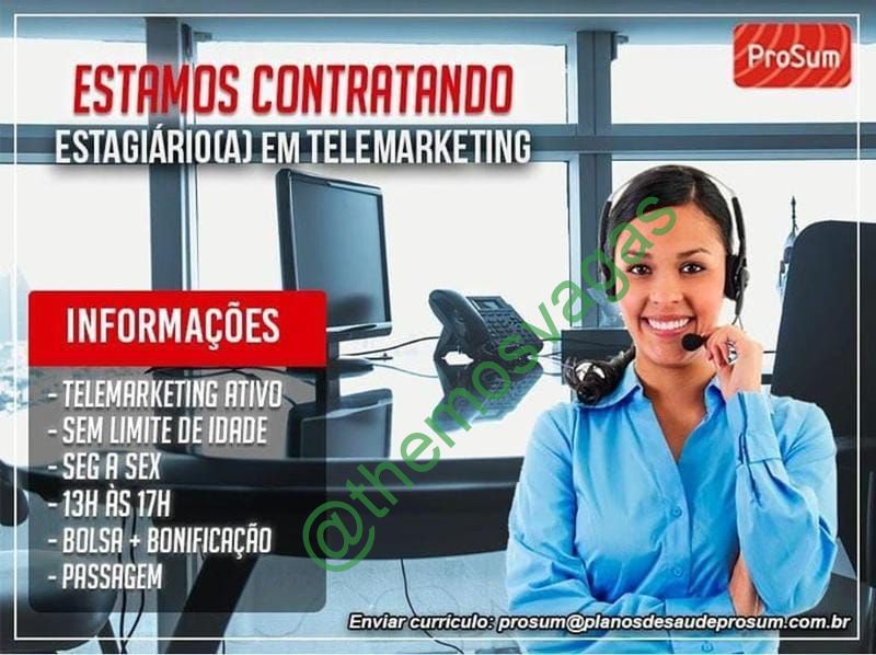 – Interessados(as) e que atendam ao perfil solicitado acima, devem enviar o currículo para o e-mail prosum@planodesaudeprosum.com.br , colocando no título “Estágio em Telemarketing”.