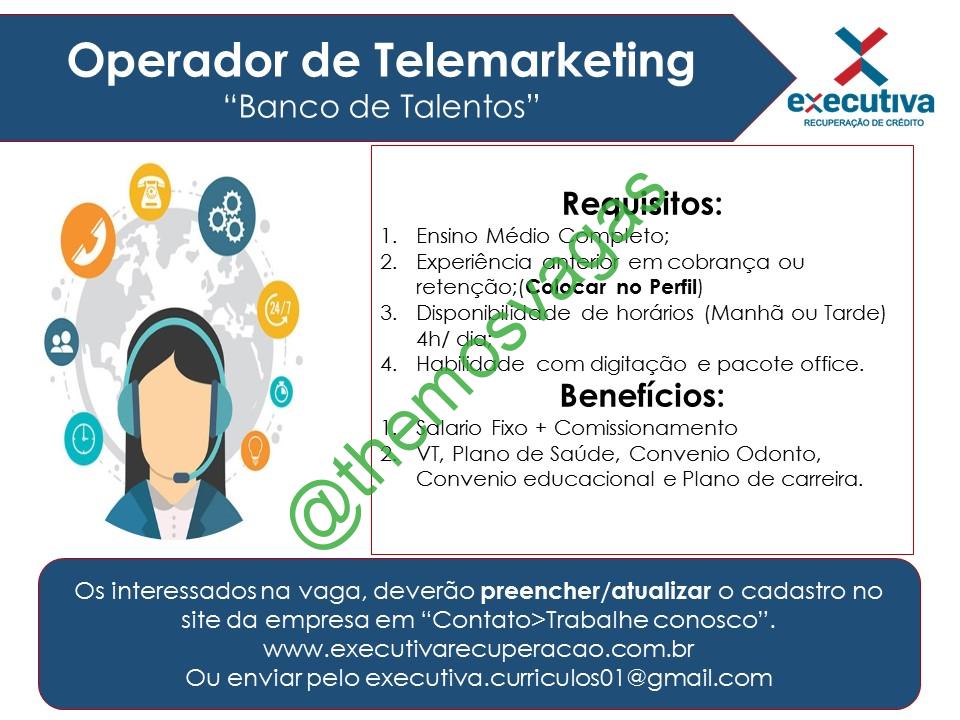 – Interessados(as) e que atendam ao perfil solicitado acima, devem enviar o currículo para o e-mail executiva.curriculos01@gmail.com contendo no título/assunto “Estágio de Telemarketing THE“.