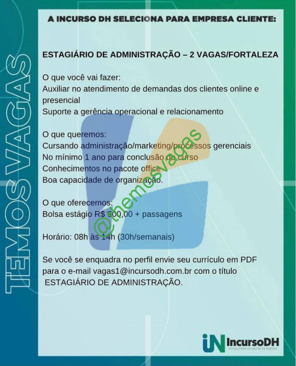 – Interessados(as) e que atendam ao perfil solicitado acima, devem enviar o currículo para o e-mail vagas1@incursodh.com.br , contendo no título/assunto “Estágio em Administração – FOR“.