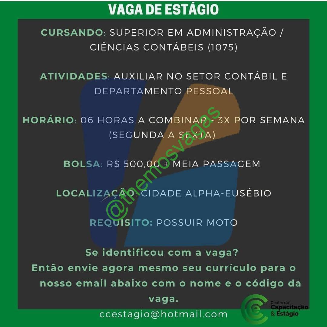 – Interessados(as) e que atendam ao perfil solicitado acima, devem enviar o currículo para o e-mail ccestagio@hotmail.com, contendo no titulo/assunto “Estágio em Administração 1075 – FOR”.