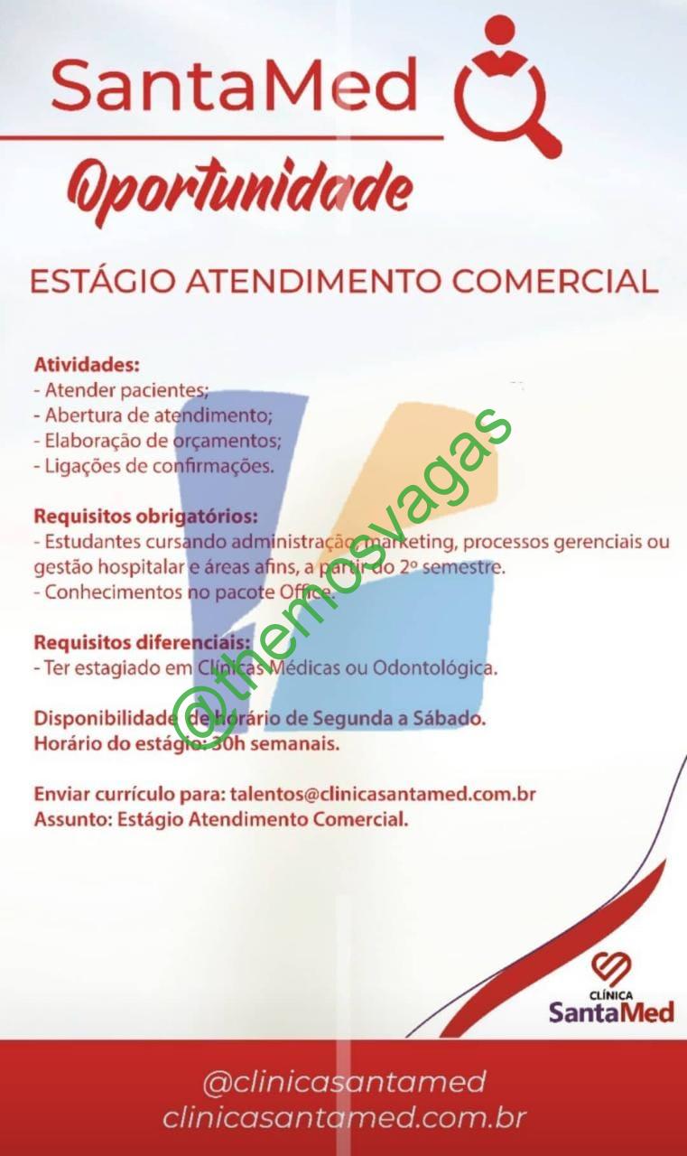 – Interessados(as) e que atendam ao perfil solicitado acima, devem enviar o currículo para o e-mail talentos@clinicasantamed.com.br, contendo no título/assunto “Estágio em Atendimento Comercial – FOR“.