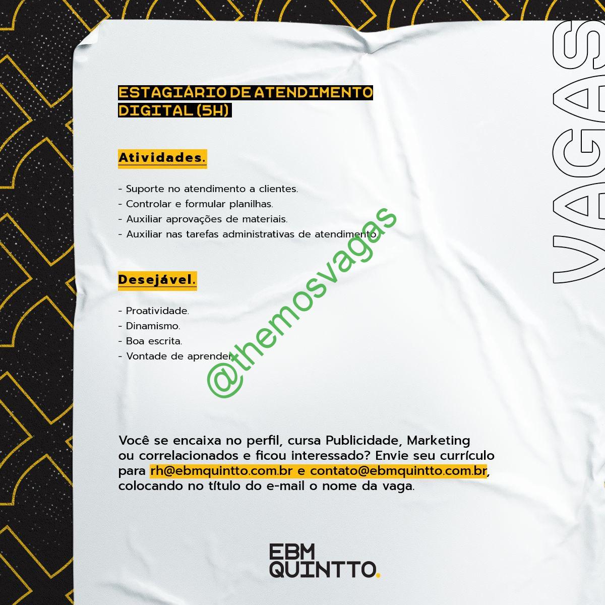 – Interessados(as) e que atendam ao perfil solicitado acima, devem enviar o currículo para o e-mail rh@ebmquintto.com.br ou contato@ebmquintto.br, contendo no titulo/assunto “Estágio em Atendimento Digital – FOR”