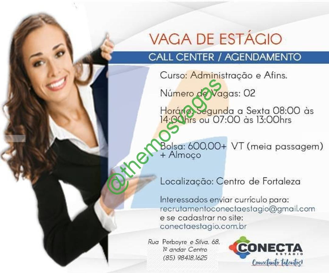 – Interessados(as) e que atendam ao perfil solicitado acima, devem enviar o currículo para o e-mail recrutamentoconectaestagio@gmail.com, contendo no titulo/assunto “Estágio em Call Center – FOR”