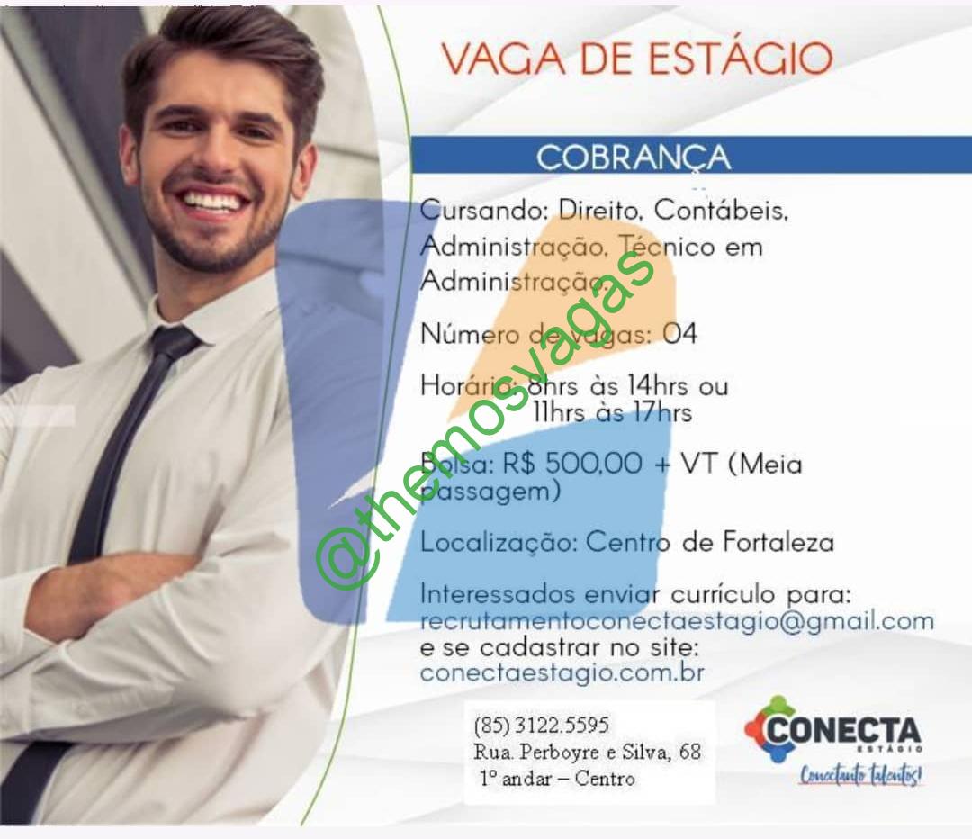 – Interessados(as) e que atendam ao perfil solicitado acima, devem enviar o currículo para o e-mail recrutamentoconectaestagio@gmail.com, contendo no titulo/assunto “Estágio em Cobrança – FOR