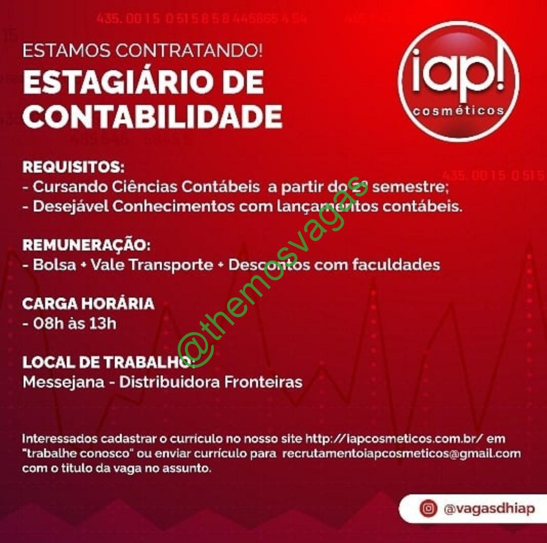 –  Interessados(as) e que atendam ao perfil solicitado acima, devem enviar o currículo para o e-mail recrutamentocosmeticos@gmail.com, contendo no título/assunto “Estágio em Contábilidade – FOR” .