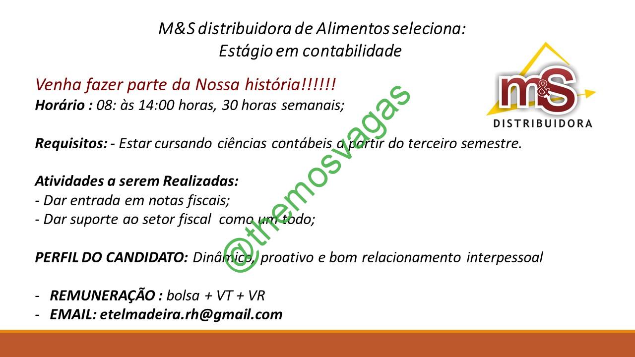 – Interessados(as) e que atendam ao perfil solicitado acima, devem enviar o currículo  para o e-mail etelmadeira.rh@gmail.com , colocando no título/assunto “Estágio em Contabilidade – FOR