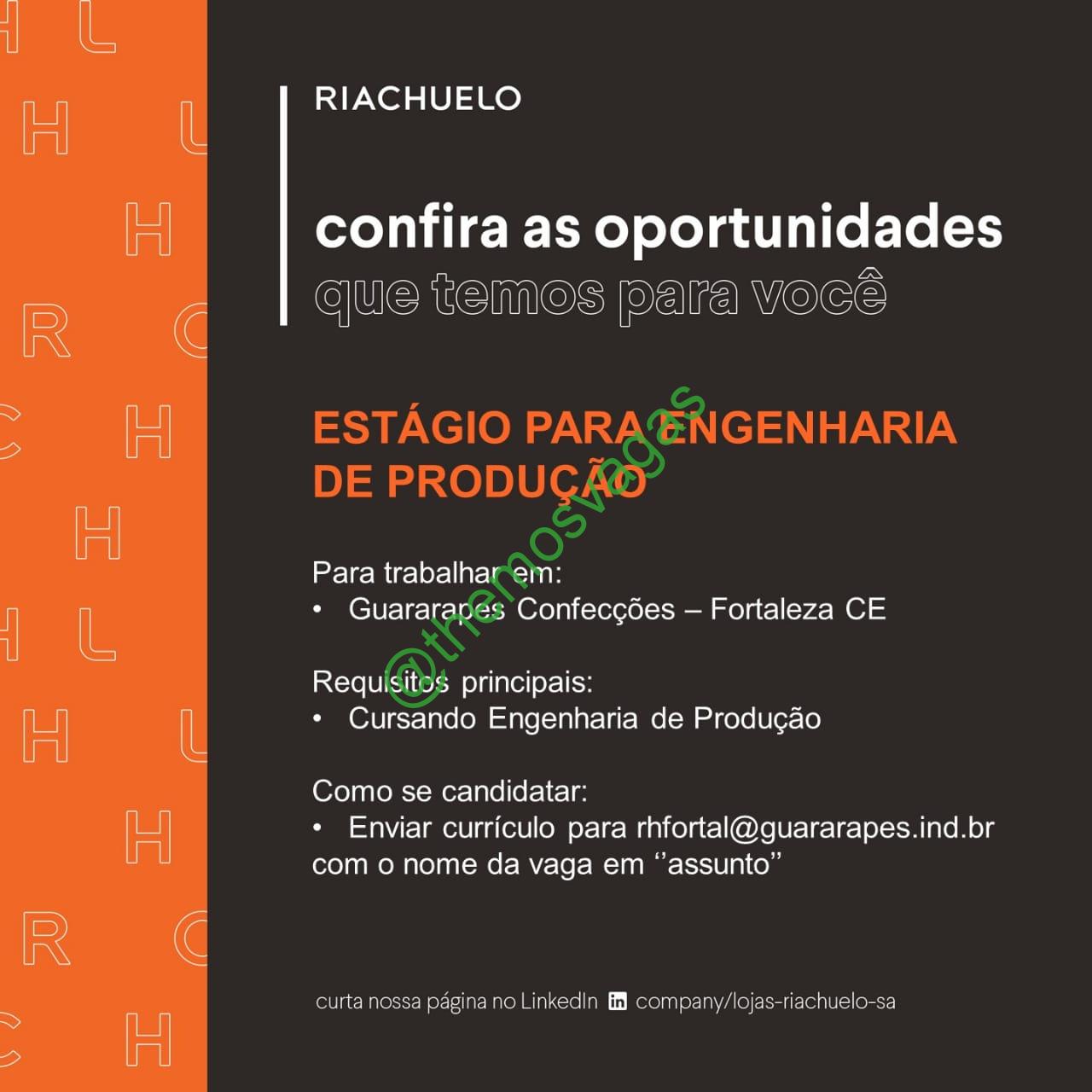 – Interessados(as) e que atendam ao perfil solicitado acima, devem enviar o currículo para o e-mail rhfortal@gurarapes.ind.br, contendo no título/assunto “Estágio em Eng de Produção  FOR“.