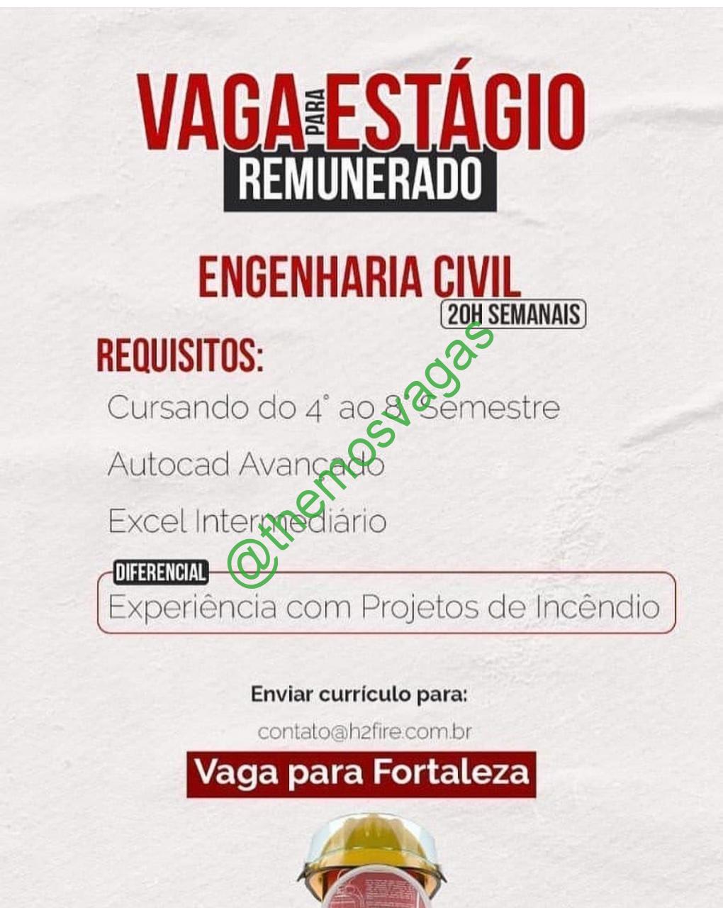 – Interessados(as) e que atendam ao perfil solicitado acima, devem enviar o currículo para o e-mail contato@h2fire.com.br, contendo no titulo/assunto “Estágio em Engenharia Civil – FOR”