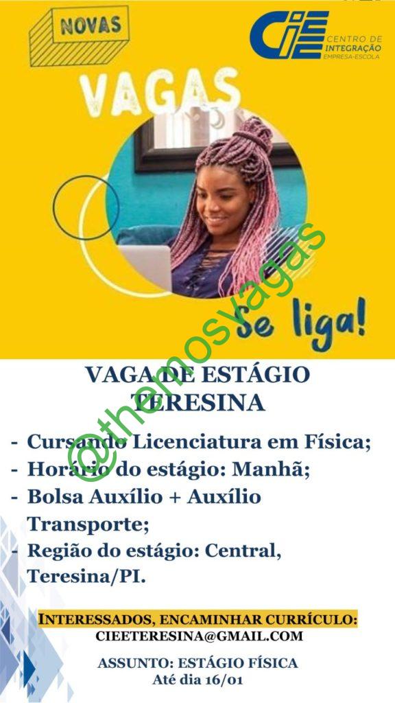 – Interessados(as) e que atendam ao perfil solicitado acima, devem enviar o currículo até 16/01/2022  para o e-mail cieeteresina@gmail.com contendo no título/assunto “Estágio Física