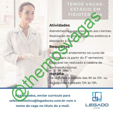 – Interessados(as) e que atendam ao perfil solicitado acima, devem enviar o currículo  para o e-mail  selecaoestetica@legadocec.com.br, com o titulo/assunto “Estágio em Fisioterapia – FOR
