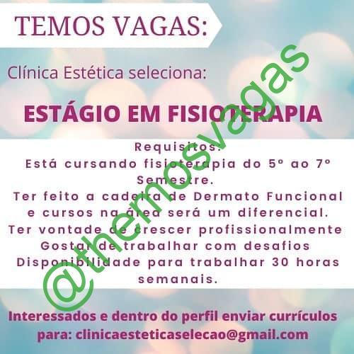 Interessados(as) e que atendam ao perfil solicitado acima, devem enviar o currículo para o e-mail clinicaesteticaselecao@gmail.com , contendo no título/assunto “Estágio Fisioterapeuta – FOR“.