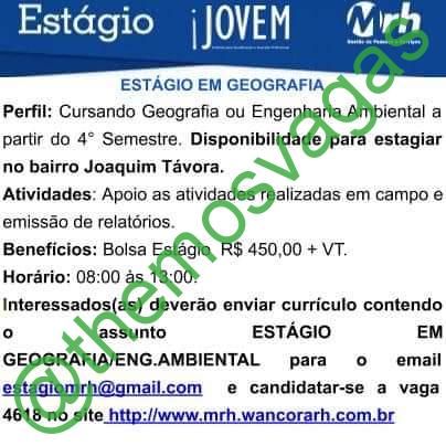 – Interessados(as) e que atendam ao perfil solicitado acima, devem enviar o currículo para o e-mail estagiomrh@gmail.com , colocando no título “Estágio em Geografia/Eng. Ambiental”.