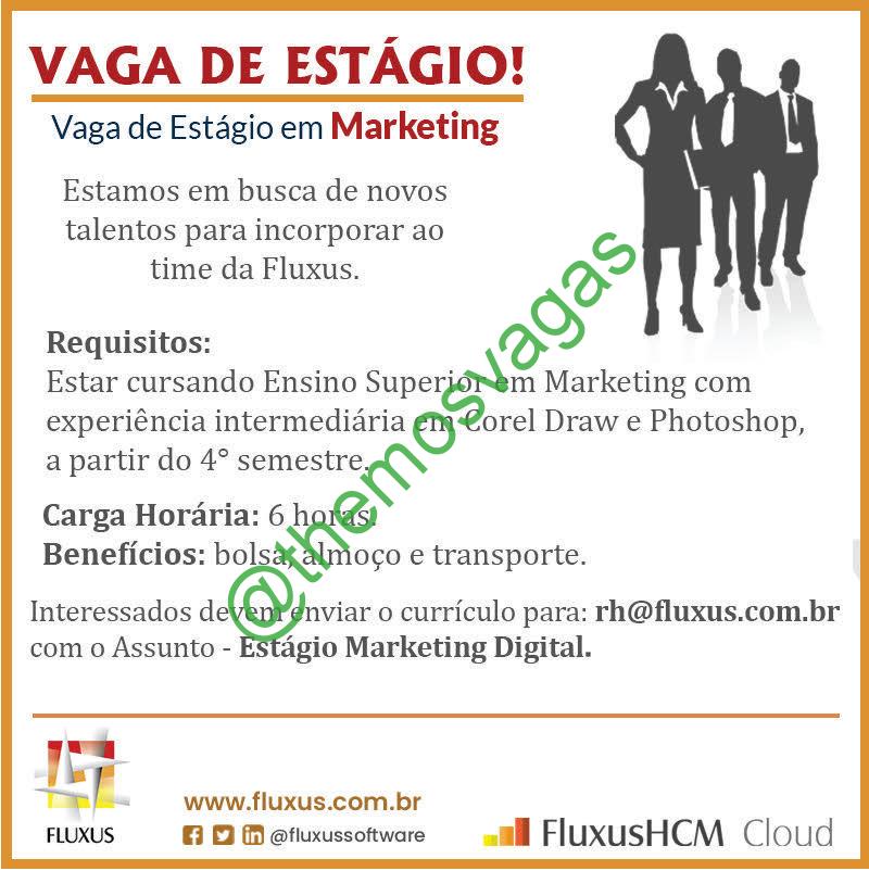 – Interessados(as) e que atendam ao perfil solicitado acima, devem enviar o currículo para o e-mail rh@fluxus.com.br , colocando no título “Estágio  Marketing Digital”.