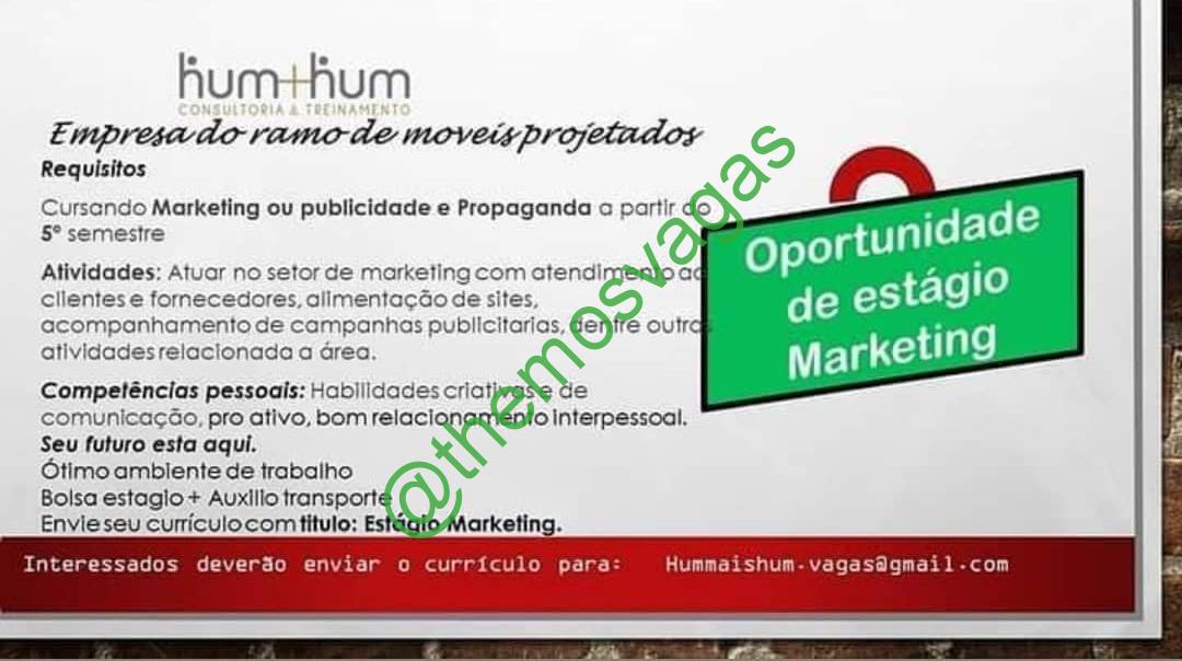 ---------- ATENÇÃO: Essa vaga é de responsabilidade do anunciante. Fique atento para possíveis golpes. Se perceber algo suspeito, nos comunique através do e-mail floromauel@gmail.com colocando no título "Themos Vagas - Denúncia" juntamente com o link da publicação e o motivo da denúncia na descrição da mensagem para que possamos analisar e parar de divulgar o anúncio. ----------