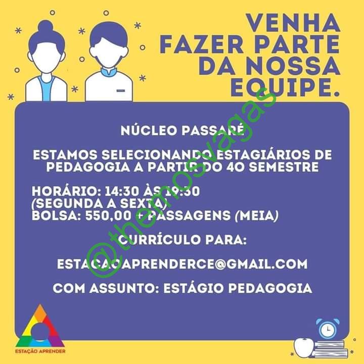 – Interessados(as) e que atendam ao perfil solicitado acima, devem  enviar o currículo  para e-mail estacaoaprenderce@gmail.com contendo no titulo/assunto “Estágio em Pedagogia – FOR”.