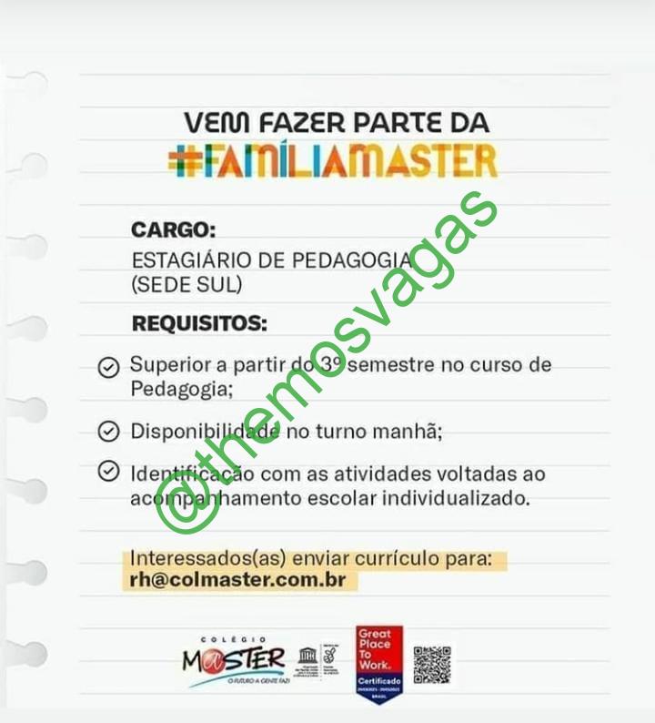 ---------- ATENÇÃO: Essa vaga é de responsabilidade do anunciante. Fique atento para possíveis golpes. Se perceber algo suspeito, nos comunique através do e-mail floromauel@gmail.com colocando no título "Themos Vagas - Denúncia" juntamente com o link da publicação e o motivo da denúncia na descrição da mensagem para que possamos analisar e parar de divulgar o anúncio. ----------