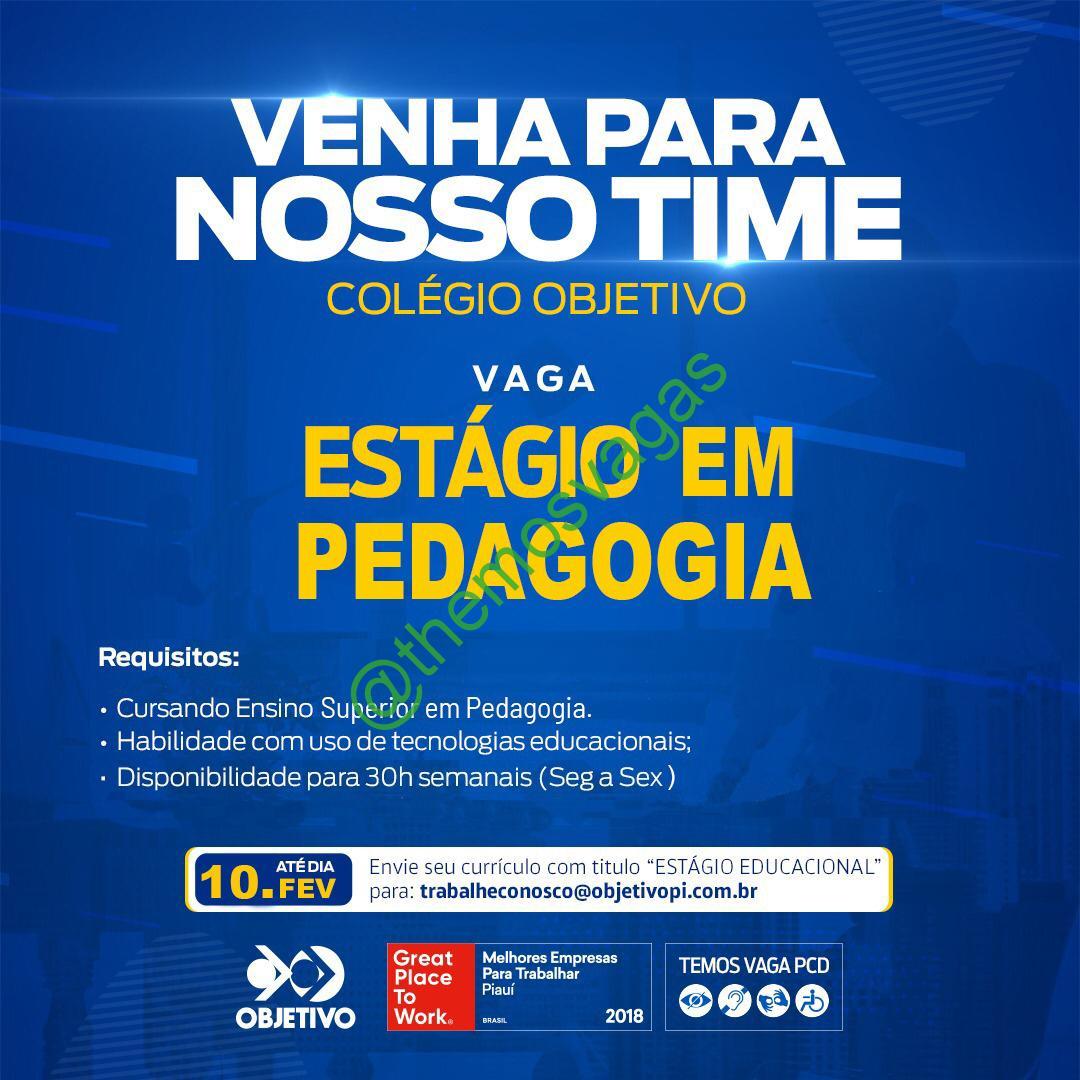 – Interessados(as) e que atendam ao perfil solicitado acima, devem enviar o currículo até 10/02/2022  para o e-mail trabalheconosco@objetivopi.com.br contendo no título/assunto “Estágio Pedagógico