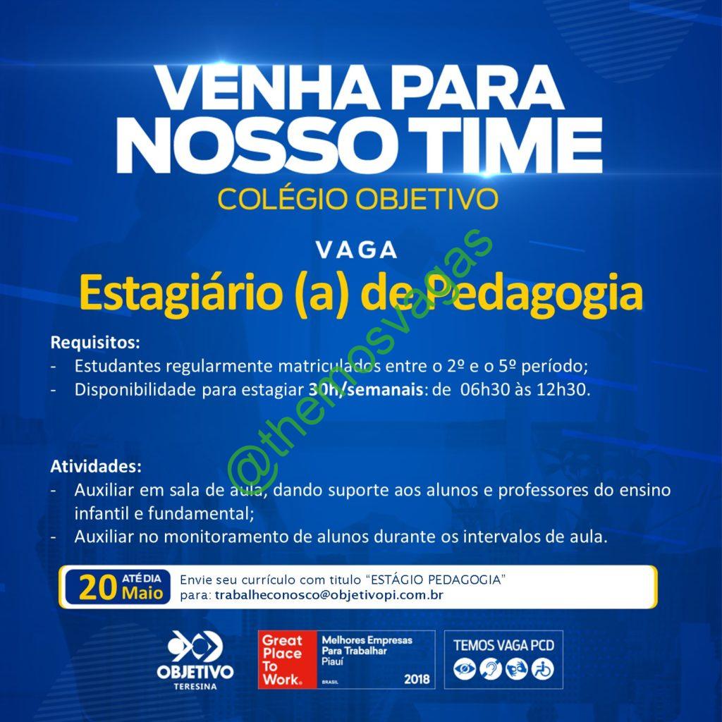 – Interessados(as) e que atendam ao perfil solicitado acima, devem enviar o currículo até 20/05/2022  para o e-mail trabalheconosco@objetivopi.com.br contendo no título/assunto “Estágio Pedagogia