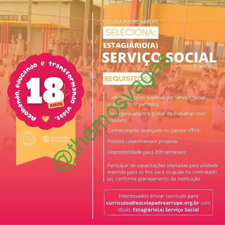 – Interessados(as) e que atendam ao perfil solicitado acima, devem enviar o currículo para o e-mail curriculos@escolapadrearrupe.org.br contendo no título/assunto “Estágio em Serviço Social THE