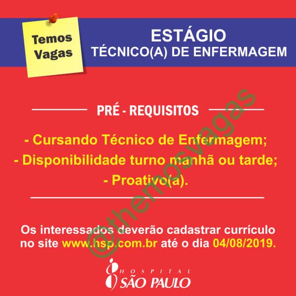Estágio em Técnico(a) de Enfermagem / 01 vaga(s) / Teresina – PI