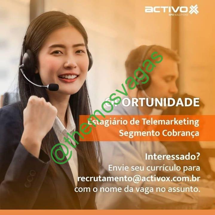 – Interessados(as) e que atendam ao perfil solicitado acima, devem enviar o currículo para o e-mail recrutamento@activox.com.br , colocando no título “Estagiário(a) em Telemarketing (Segmento de Cobrança)”.