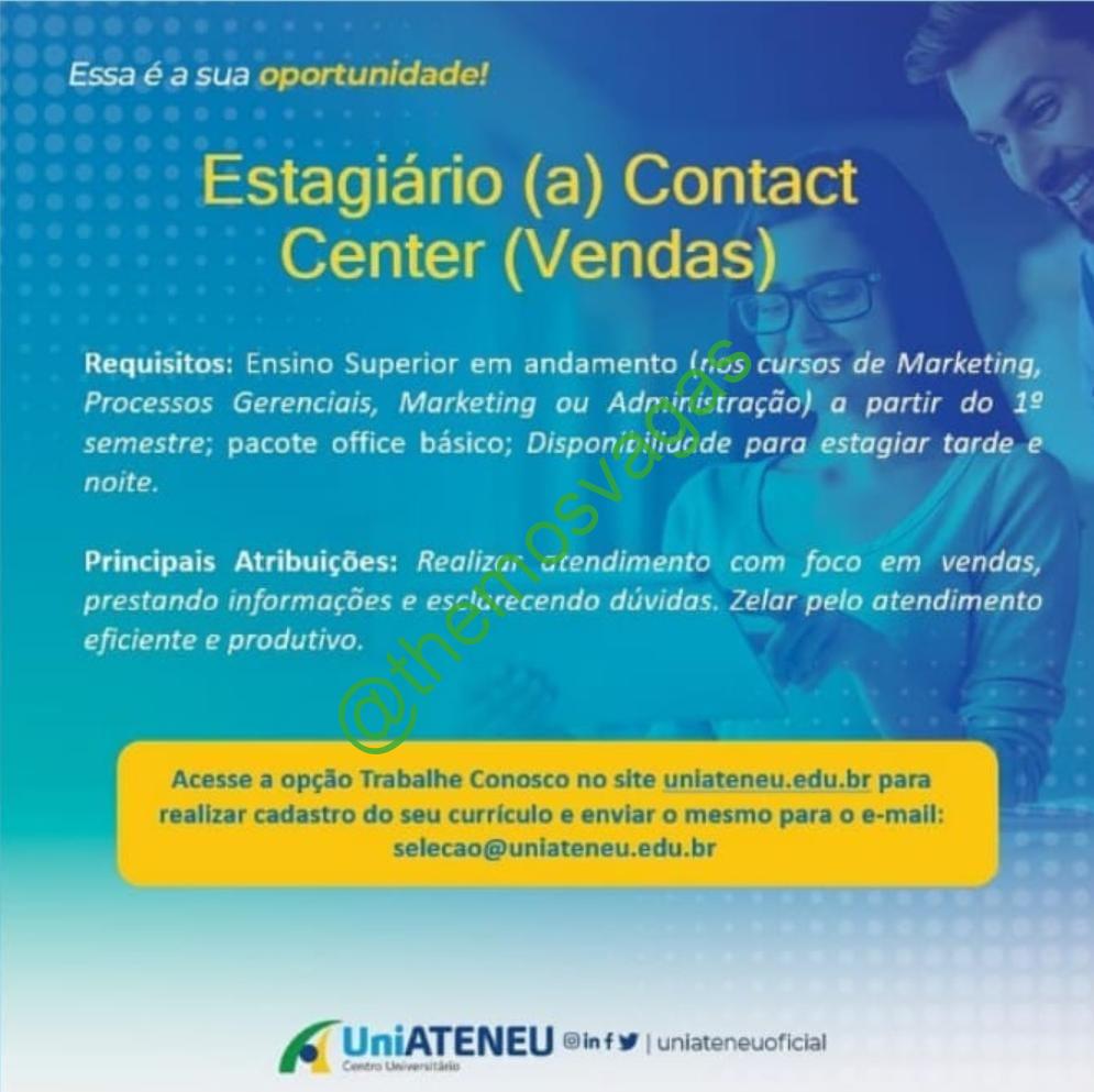 – Interessados(as) e que atendam ao perfil solicitado acima, devem enviar o currículo para o e-mail selecao@uniateneu.edu.br, contendo no titulo/assunto “Estágio em Vendas FOR”.