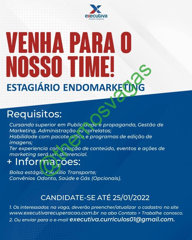 – Interessados(as) e que atendam ao perfil solicitado acima, devem enviar o currículo até 25/01/2022  para o e-mail executiva.curriculos01@gmail.com contendo no título/assunto “Estágio Endomarketing  THE
