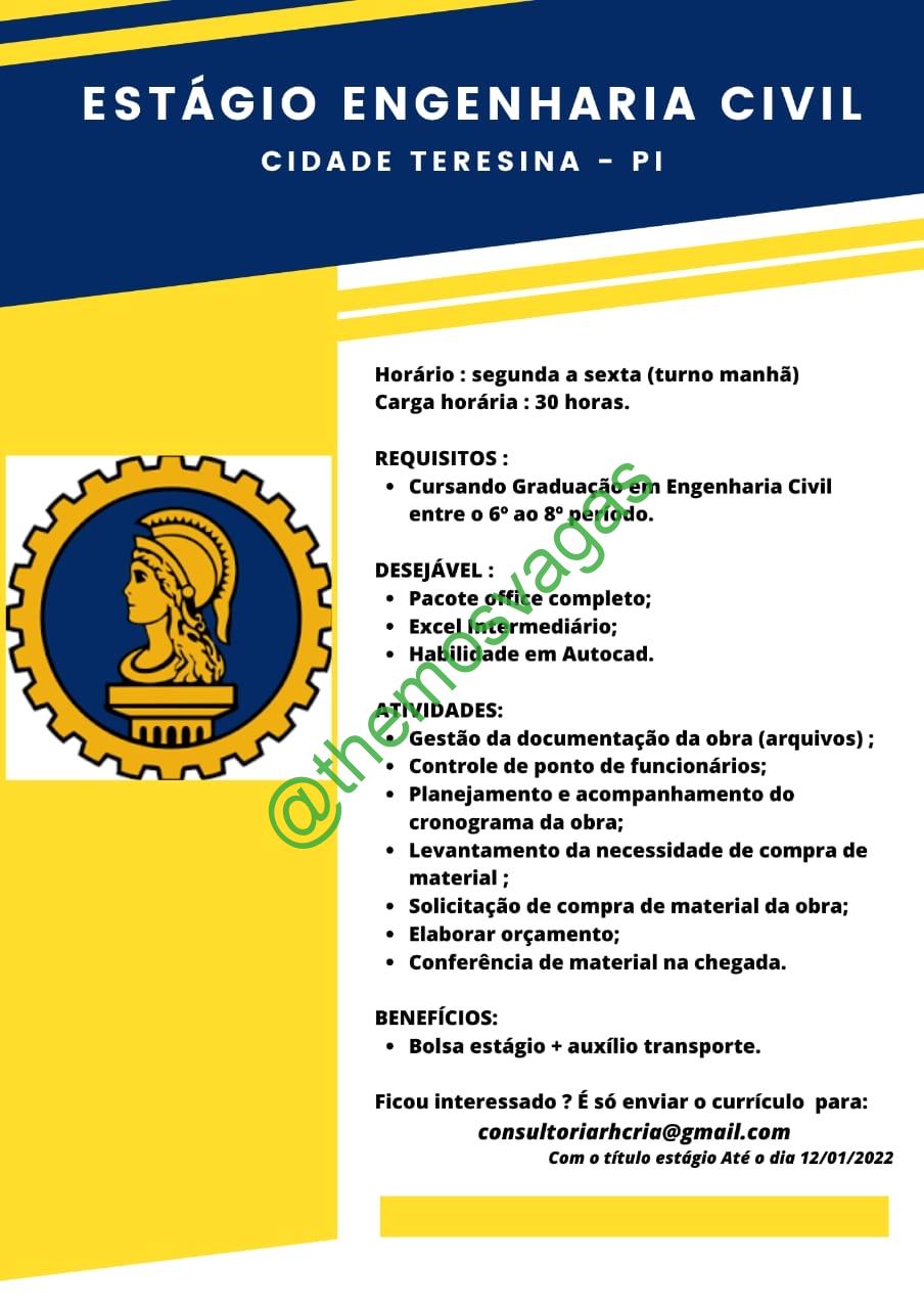 Estágio Engenharia Civil | Teresina – PI | 01 vaga(s)