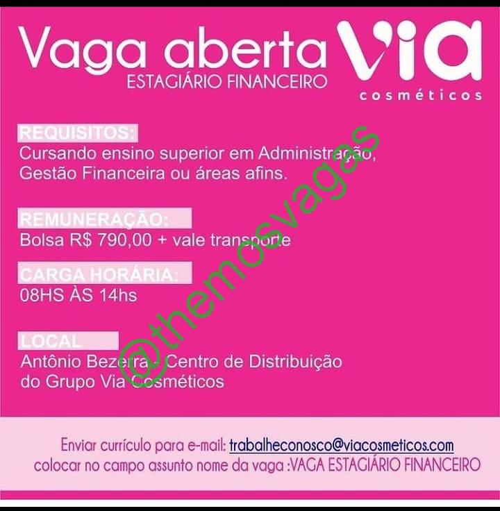 – Interessados(as) e que atendam ao perfil solicitado acima, devem enviar o currículo para o e-mail trabalheconosco@viacosmedicos.com, contendo no título/assunto “Estágio Financeiro – FOR