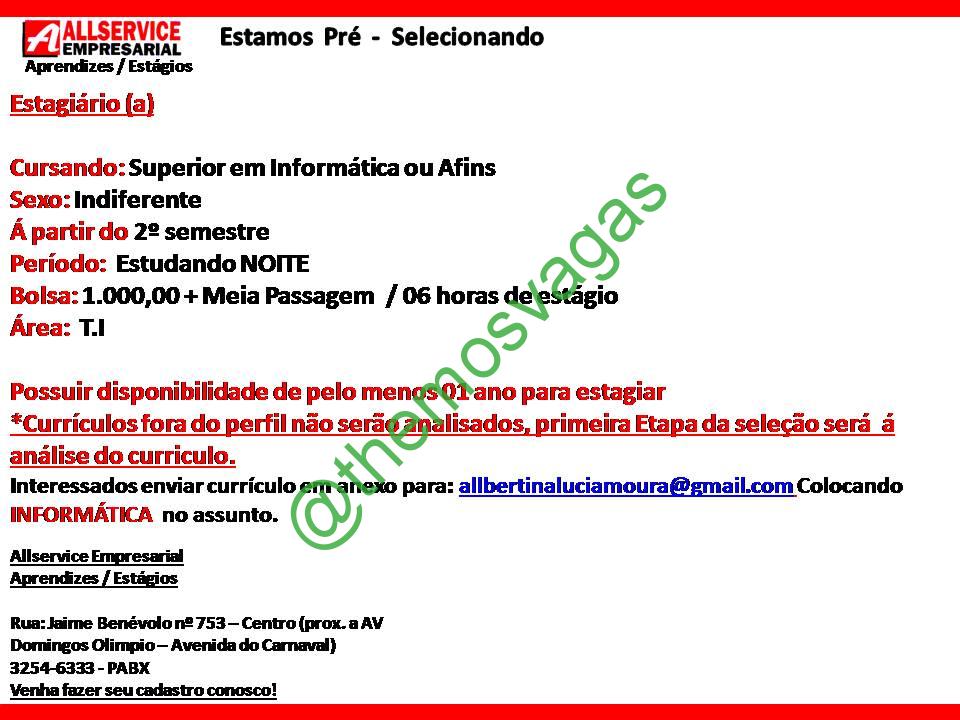Estágio em Informatica | Fortaleza – CE | 01 vaga(s)