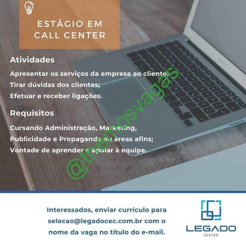 – Interessados(as) e que atendam ao perfil solicitado acima, devem enviar o currículo para o e-mail selecao@legadocec.com.br , contendo no título/assunto “Estágio em Call Center – FOR“.