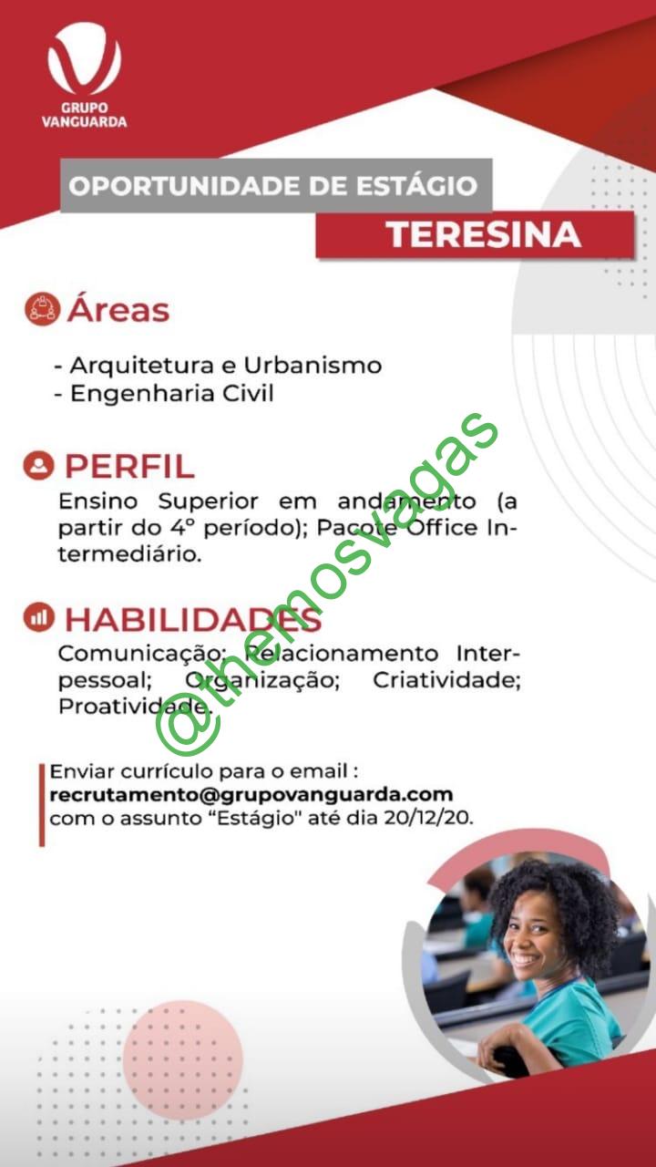 – Interessados(as) e que atendam ao perfil solicitado acima, devem enviar o currículo até 20/12/20 para o e-mail recrutamento@grupovanguarda.com, contendo no título/assunto “Estágio Superior – THE“.