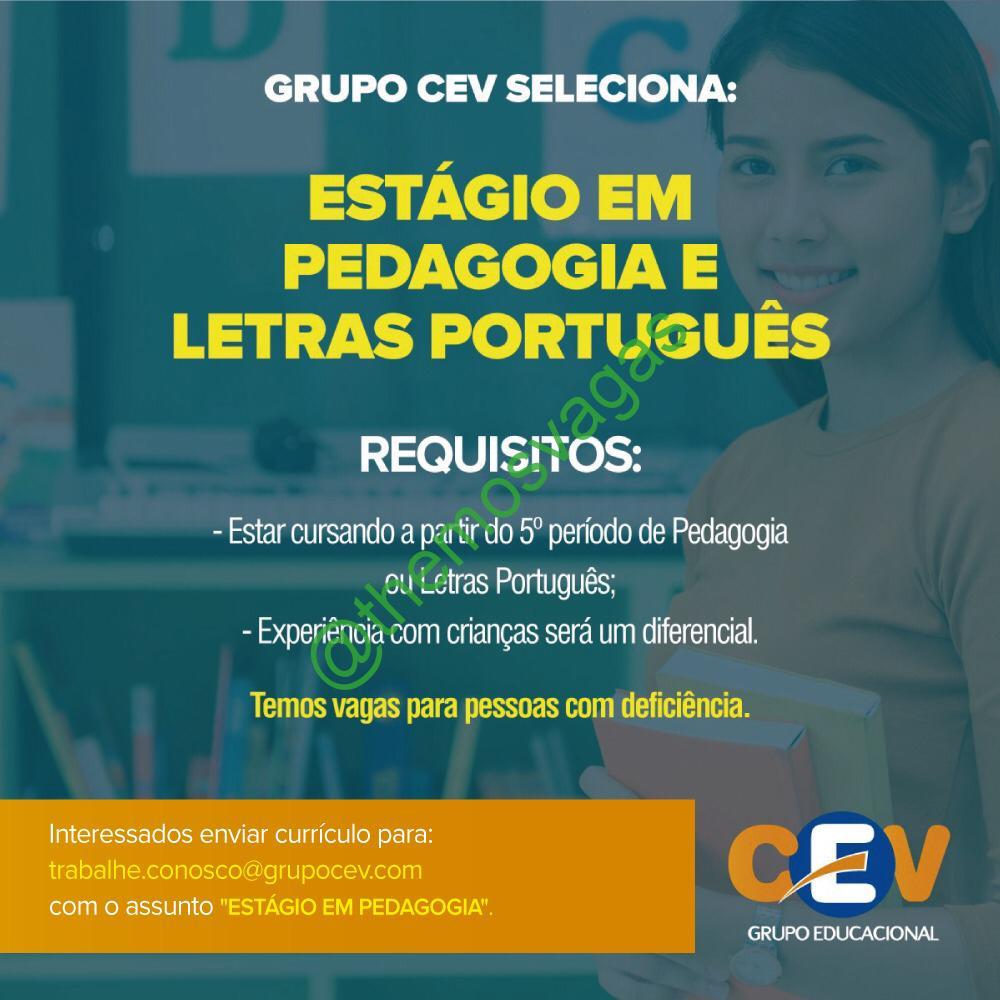 – Interessados(as) e que atendam ao perfil solicitado acima, devem enviar o currículo  para o e-mail trabalhe.conosco@grupocev.com contendo no título/assunto “Estágio em Pedagogia THE