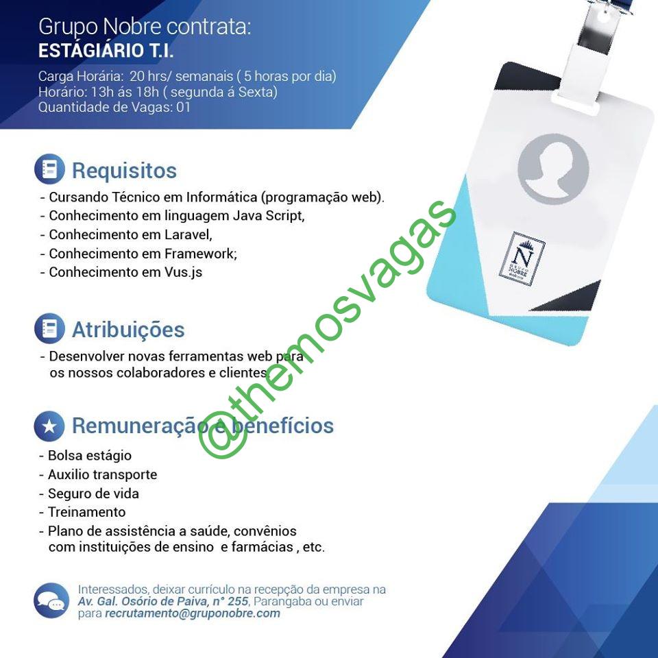 ---------- ATENÇÃO: Essa vaga é de responsabilidade do anunciante. Fique atento para possíveis golpes. Se perceber algo suspeito, nos comunique através do e-mail floromauel@gmail.com colocando no título "Themos Vagas - Denúncia" juntamente com o link da publicação e o motivo da denúncia na descrição da mensagem para que possamos analisar e parar de divulgar o anúncio. ----------