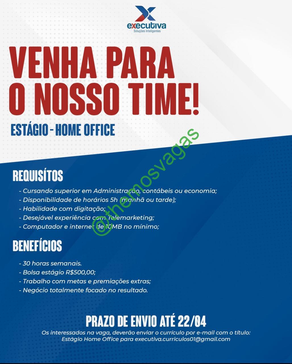 – Interessados(as) e que atendam ao perfil solicitado acima, devem enviar o currículo até 22/04/2021 para o e-mail executiva.curriculos01@gmail.com contendo no título/assunto “Estágio Telemarketing THE