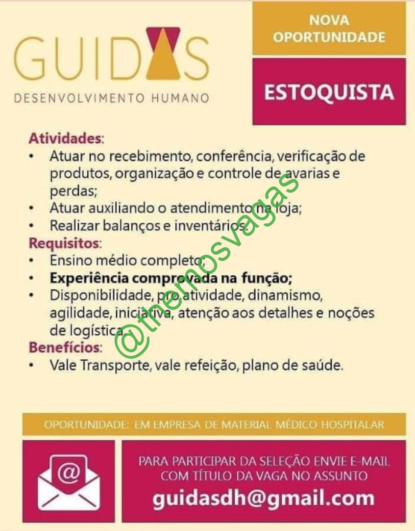 – Interessados(as) e que atendam ao perfil solicitado acima, devem enviar o currículo para o e-mail guidasdh@gmail.com, contendo no titulo/assunto “Estoquista – FOR”