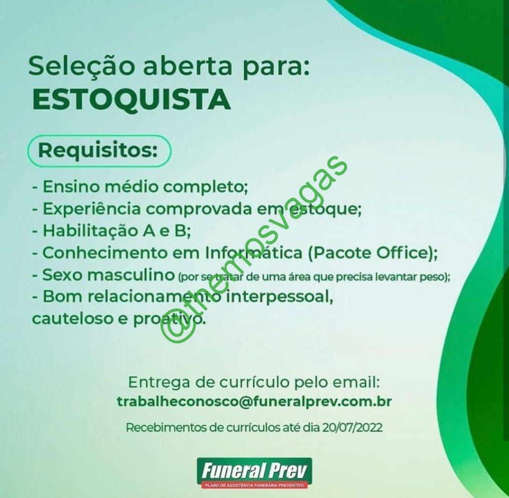 – Interessados(as) e que atendam ao perfil solicitado acima, devem enviar o currículo até 20/07/2022 para o e-mail trabalheconosco@funeralprev.com.br contendo no título/assunto “Estoquista PHB