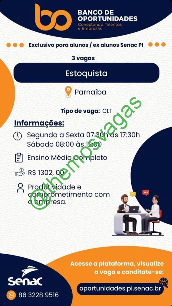 – Vaga exclusiva para alunos e ex alunos do Senac PI.