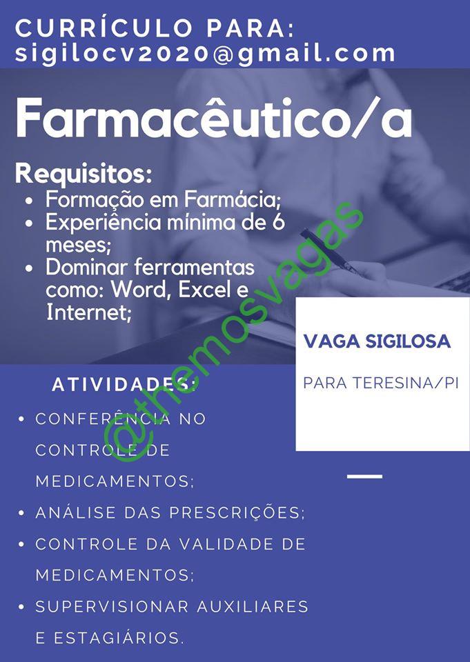 Farmacêutico(a) / 01 vaga(s) / Teresina – PI
