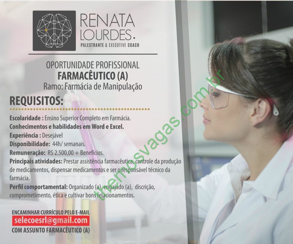 Interessados(as) e que atendam aos requisitos devem enviar o perfil profissional, colocando no título do e-mail “Farmacêutico(a)”, para: selecoesrl@gmail.com