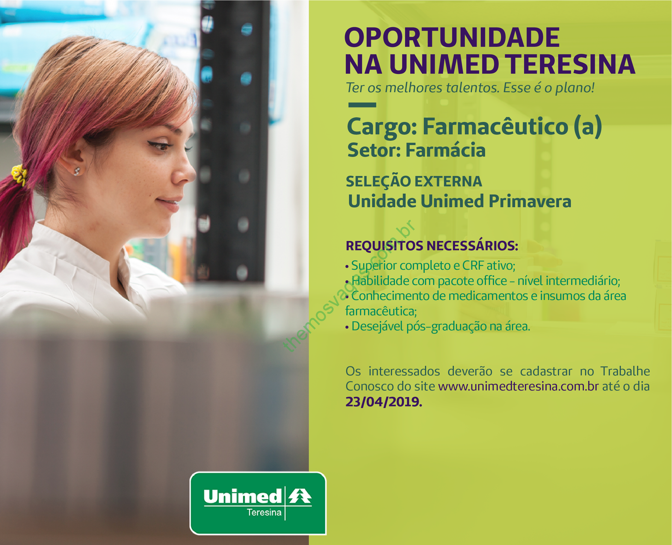 Farmacêutico(a) na ‘Unimed’ em Teresina – PI