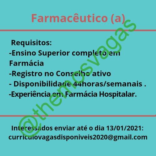 – Interessados(as) e que atendam ao perfil solicitado acima, devem enviar o currículo até 13/01/2021 para o e-mail curriculovagasdisponiveis2020@gmail.com contendo no título/assunto “Farmacêutico(a) THE