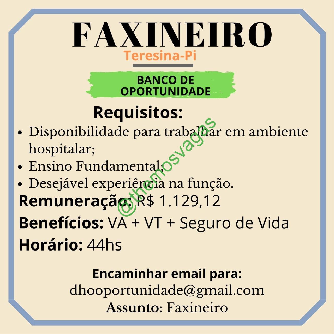 Faxineiro | Teresina – PI | 01 vaga(s)