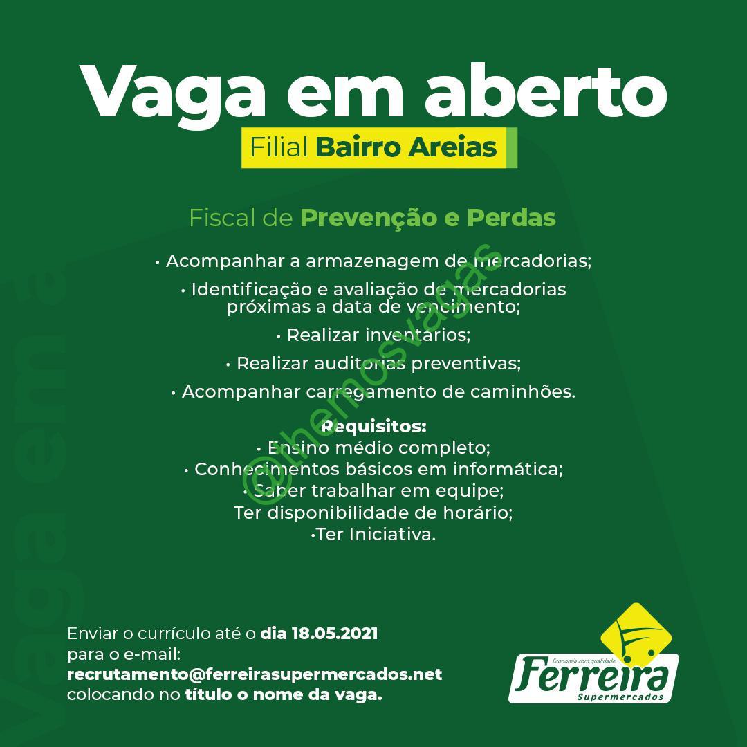 – Interessados(as) e que atendam ao perfil solicitado acima, devem enviar o currículo até 18/05/2021 para o e-mail recrutamento@ferreirasupermercados.net contendo no título/assunto “Fiscal de Prevenção e Perdas THE