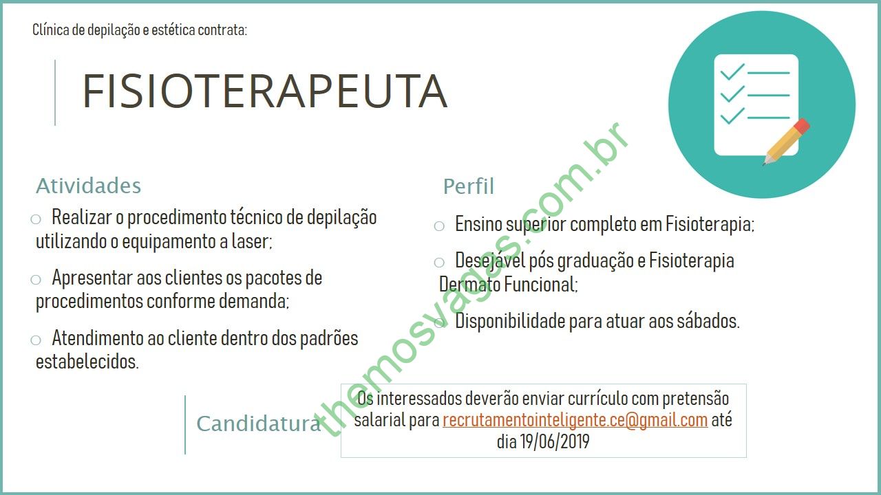 – Interessados(as) e que atendam ao perfil solicitado acima, devem enviar o currículo para o e-mail recrutamentointeligente.ce@gmail.com até o dia 19/06/2019 , colocando no título “Fisioterapeuta”.
