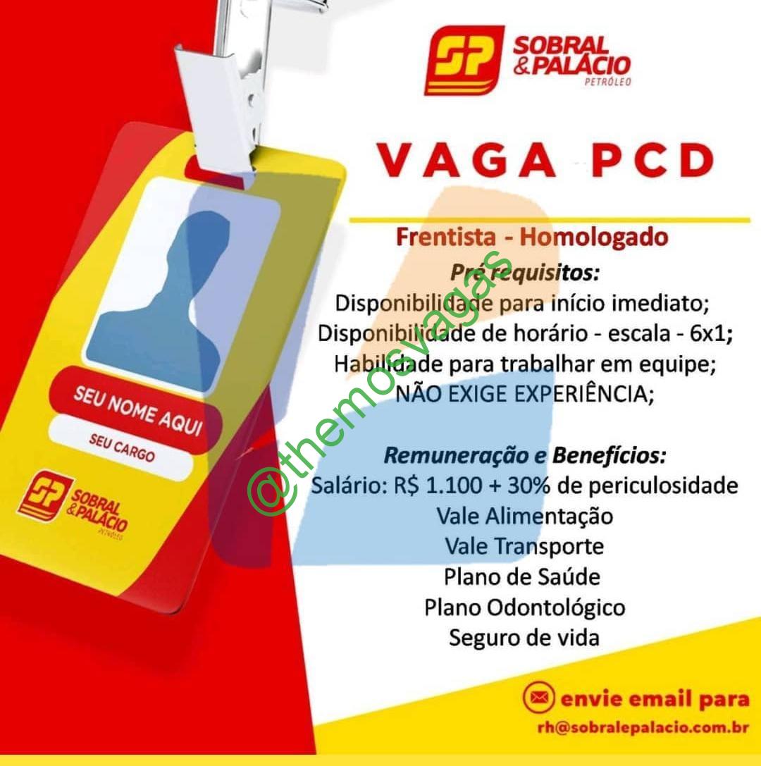 – Interessados(as) e que atendam ao perfil solicitado acima, devem enviar o currículo para o e-mail rh@sobralepalacio.com.br, contendo no titulo/assunto “Frentista PCD – FOR